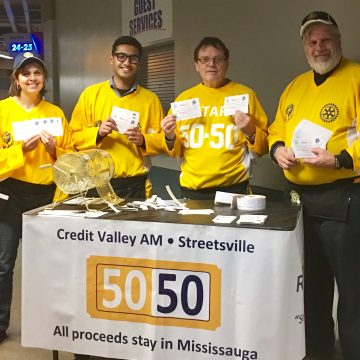 Streetsville Rotary in partnership with the Credit Valley AM Rotary Club conduct a 50/50 draw during the Mississauga Steelheads OHL hockey games. With thanks to the Steelheads Management, proceeds go to local worthy causes and offer a great prize to a lucky winner each hockey night!